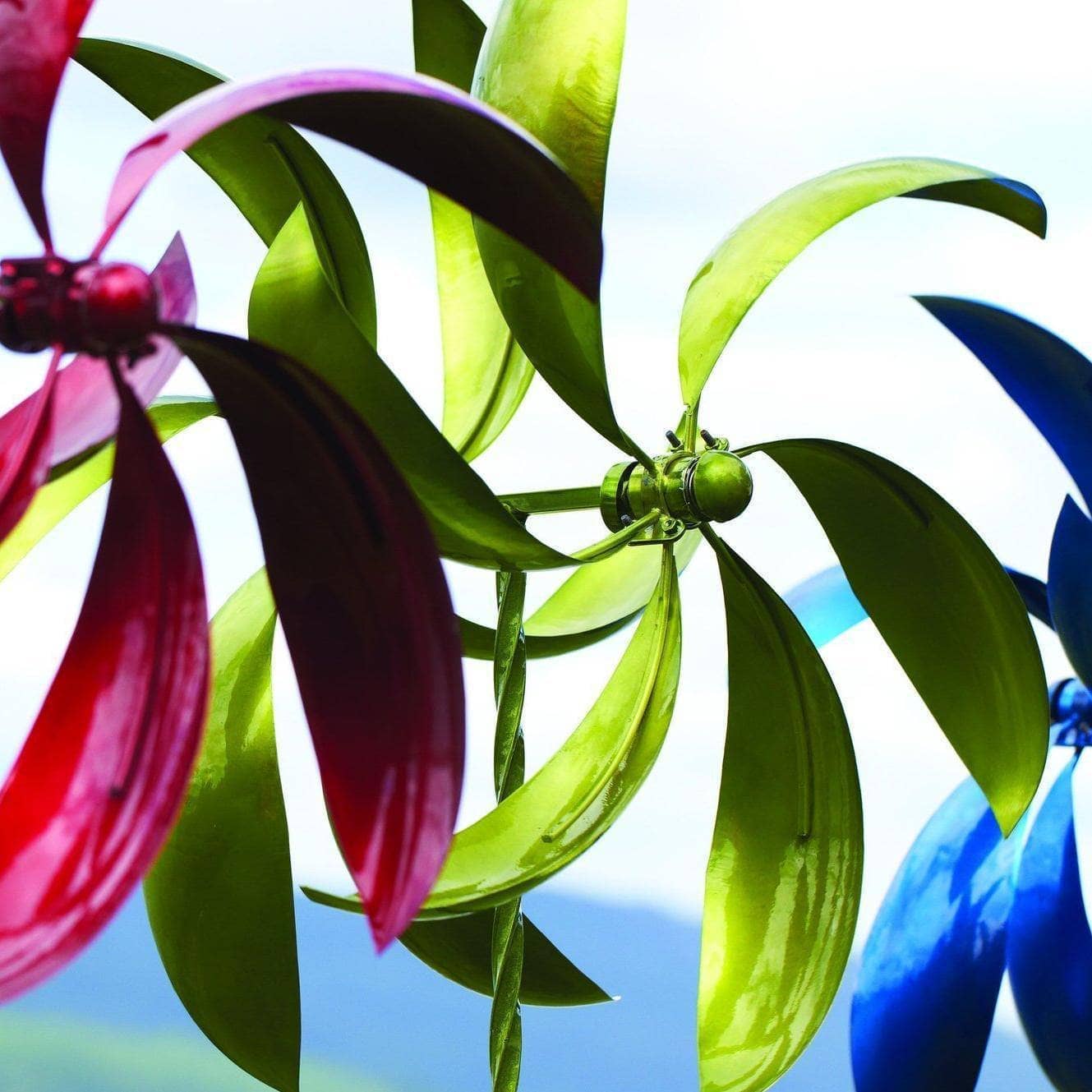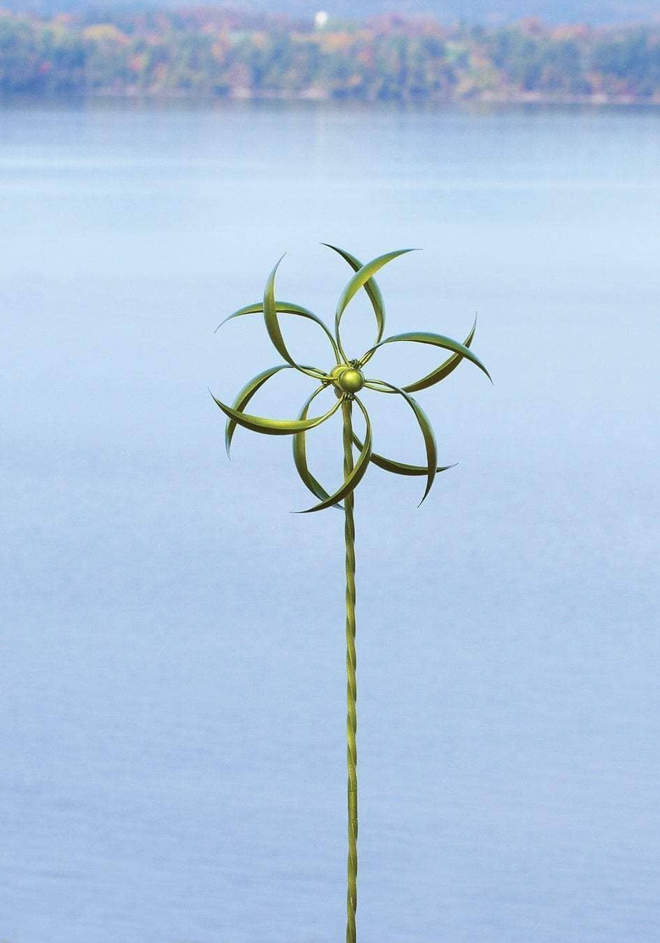 Lively motion and a bright finish make our 22” Green Feather Spinner a marvelous choice for your lawn or garden. This colorful kinetic sculpture spins cheerfully as breezes blow, adding greater dimensionality to your landscape.  Like other Happy Gardens spinners, this one has been individually handcrafted, and will bring lasting beauty to your lawn, garden, or outdoor living space.